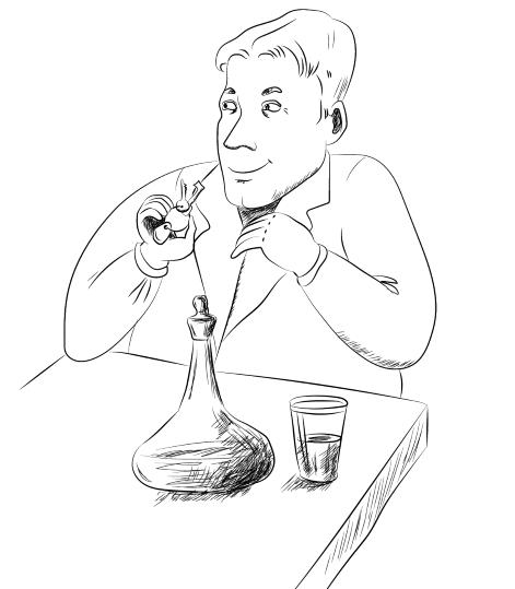 Он слышал или читал, что вино должно улучшать здоровье. Поэтому решает каждый вечер выпивать бокал вина, чтобы здоровье было крепче.