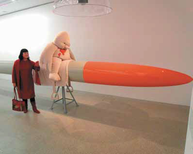 Н. М.: Да из Вас вышел бы талантливый апологет современного искусства. Пустяковую выставку детских игрушек Козимы, которую я, кстати, тоже видела когда-то в Кёльне, Вы наделили глубоким философским смыслом, о котором ни она сама, ни ее кураторы, я думаю, и не догадываются. Кстати, если уж всерьез относиться к этой даме, то там инфантилизм замешан и на том же Вашем апокалиптизме. Некоторые игрушки весьма безобидного вида оседлали у этой дамы муляжи подлинных боевых ракет дальнего действия в натуральную величину, а на их слюнявчиках запеклись сгустки крови. Помните, например, объект «Мисс проступок (Блюющий белый цыпленок сердится)» (Courtesy Galerie, Берлин), в котором активно задействована еще одна категория нонклассики – эстетический шок, та до предела обостренная эстетическая оппозиция, связанная с нарушением общепринятых эстетических норм, традиционных вкусов и сопряженная с гротескным, безобразным, ужасным, монструозным, которая вызывает у реципиента чрезвычайно острую, а порой и болезненную эмоциональную реакцию, вплоть до отторжения?