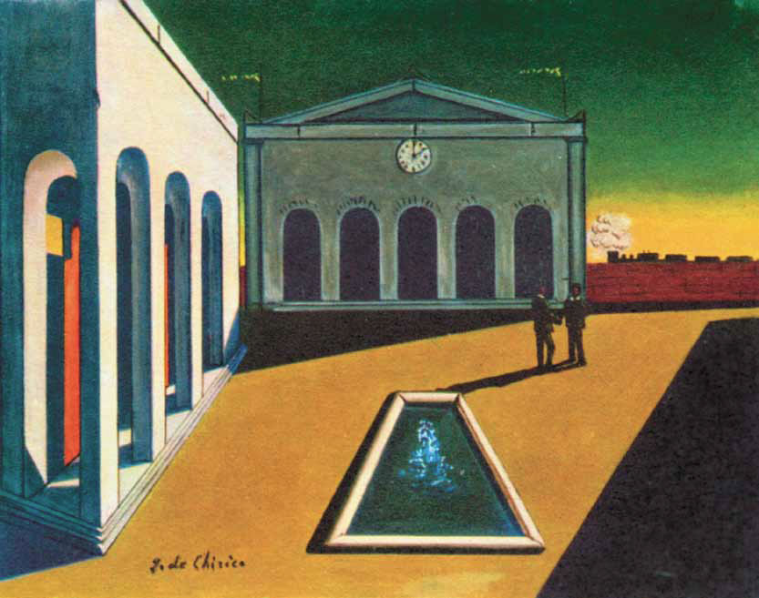 Сюрреализм, как известно, возник из развития на художественно-эстетической почве идей интуитивизма, фрейдизма, а также художественных находок дадаизма и метафизической живописи (pittura metafisica) в первую очередь. Поэтому есть смысл вспомнить и это камерное, но крайне важное для понимания духа сюрреализма направление, ибо он впервые с особой силой и практически во всей полноте проявился именно в нем, прежде всего в полотнах Джорджоде Кирико, который был его создателем, теоретиком и практически главным, если не единственным, полновесным представителем. Основные метафизические картины были созданы им в период 1910–1919 гг. С 1917 г. к нему присоединились Карло Карра и несколько позже Джорджо Моранди.