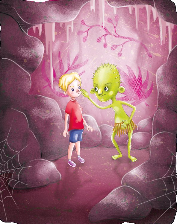 Огромный лист лопуха даже не дрогнул, когда на него спрыгнул странный человечек: зелёный, покрытый острыми колючками, одетый лишь в юбку из высохшей тины.