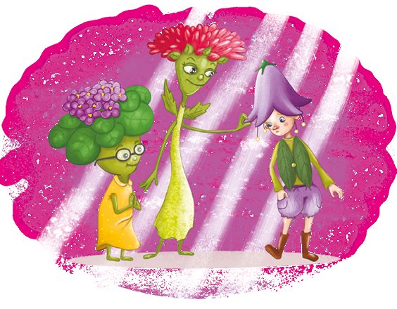 – Ага, видишь! Всё-таки ты на что-то способен! Компьютер мне ни к чему, а вот танцы… Будешь петь и танцевать для моих гостей! Поручаю тебе всех веселить! Рацикония! Глюмбарис! – вбежали пожилая фиалка Рацикония и молоденькая астра Глюмбарис.