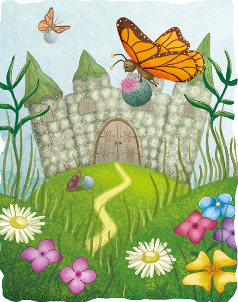За деревьями открылась серая пыльная равнина. Сотни бабочек, удерживая в лапках репейные головки, слетались к уродливому возвышению, похожему на здоровенный пушистый зелёный пень. Это был строящийся замок Квазигуда. Жуки-навозники катили репейные шары, муравьи сцепляли их, возводя замковые стены. Сверху, помогая муравьям, ползали мокрицы. Стражники-гладиолусы следили, чтобы не нарушался порядок работы.