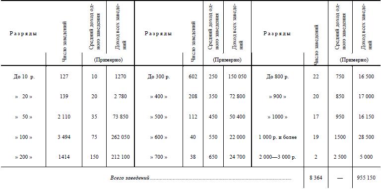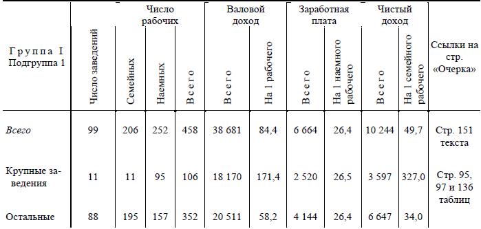 По данным о доходности заведений к этим категориям присоединим примерное распределение заведений по числу семейных и наемных рабочих [205]205