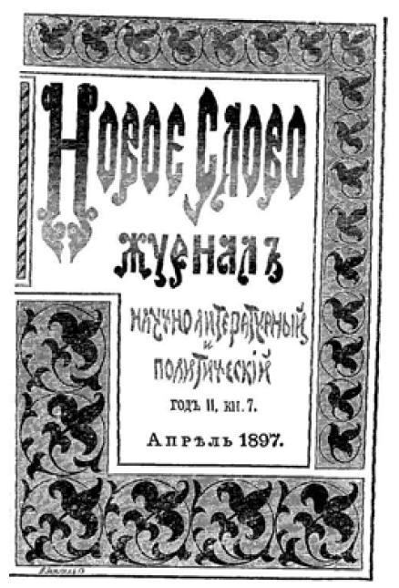Обложка журнала «Новое Слово», в котором впервые были напечатаны статьи В. И. Ленина «К характеристике экономического романтизма» и «По поводу одной газетной заметки». – 1897 г. (Уменьшено)