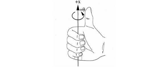 Рис. 1.2. Положительное направление вращения вокруг оси.