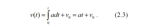 Тогда при неизменном ускорении скорость автомобиля в некоторый момент времени t равна интегралу от выражения для ускорения плюс постоянная интегрирования – начальная скорость автомобиля в момент времени t=0: