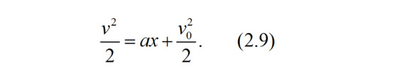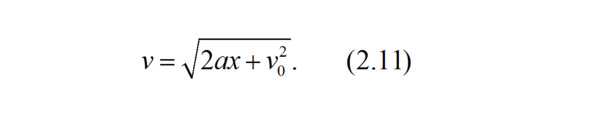 Или, извлекая квадратный корень из левой и правой части равенства (2.10), получаем выражение для скорости автомобиля v в м/с в зависимости от пути x, на котором автомобиль ускорялся или замедлялся:
