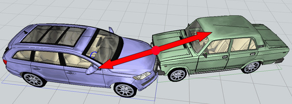 Кажется, что все просто. Однако при рассмотрении реальных ДТП остаются вопросы определения точки приложения силы и направления линии силы взаимодействия во времени и пространстве.