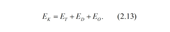 При столкновении автомобиля с другим транспортным средством или препятствием его кинетическая энергия EK расходуется на работу сил трения ET и на деформацию конструкций столкнувшихся объектов ED. Если в результате удара скорость автомобиля не погашена, то он имеет остаточную кинетическую энергию EO. Тогда уравнение баланса энергии можно записать в виде