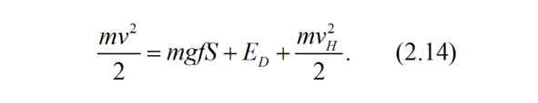 Уравнение (2.13) может быть записано развернуто: с учетом массы автомобиля m, его скорости перед началом торможения или заноса v, коэффициента сцепления шин с опорной поверхностью f, пути во время торможения или заноса S и остаточной скорости vH в виде