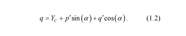 Длина проекции отрезка O`p` на ось абсцисс X есть p`cos (a). Длина отрезка Cp` есть q`sin (a).