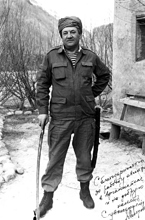 1984 год. Афганистан, Гульхана. Командир авиагруппы «Гульхана», начальник авиаотдела Восточного погранокруга полковник Александр Тимофеев с трофейной шашкой (саблей). Благодарственная подпись за отличную работу авиации в операции принадлежит заместителю начальника войск округа – руководителю операции генералу Евгению Неверовскому