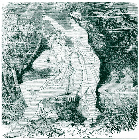 Эгир и Ран на дне морском. Иллюстрация из книги В. Вагнера «Северно-германские боги и герои», 1882 г.
