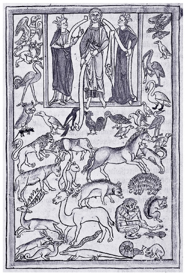 Адам дает имена животным. Нортумберлендский бестиарий, ок. 1250–1260 гг.