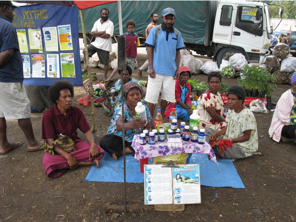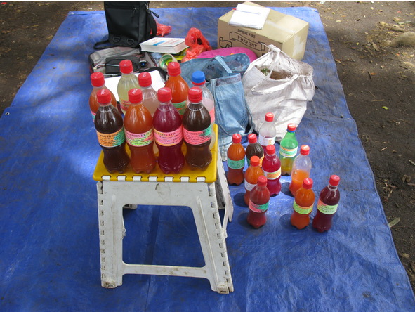 Ещё интересно, в каждом городе вы найдёте лекарей, предлагающих лечение всех болезней народными жидкими средствами. Эти средства обычно налиты в поллитровые пластиковые бутылочки из-под Кока-Колы и имеют тёмно-бурый, серый или коричневый цвет. Согласно объяснениям продавцов, этикеткам и вывескам, эти средства лечат все болезни, каждая бутылочка от своей напасти: есть и от лихорадки, и от рака, и от сифилиса, и от СПИДа. Стоят средства недёшево, от 20 до 1000 кина, и помогают, наверное, в основном папуасам. Путешественник, если желает воспользоваться таким лечением, пусть спросит совета у умного папуаса (не у продавца). Ведь продавцов бутылок в каждом городе несколько (от двух до пяти точек), и может статься, что у одного более действенные средства, а у другого нет. Мы сами не испробовали ни одного средства, вкус и дозировка нам неведомы.