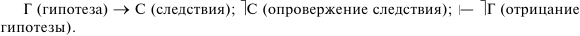 Теоретическая стадия исследования характеризуется уже иными методами: формализация (построение абстрактно-математических моделей, раскрывающих сущность изучаемых процессов действительности); аксиоматизация (построение теорий на основе аксиом); гипотетико-дедуктивный метод (создание системы дедуктивно-связанных между собой гипотез). Процесс исследования в данном случае начинается с выявления проблемы, т. е. с определения проблемной ситуации, возникающей, когда прежняя теория уже не может объяснить обнаруженных фактов. Для разрешения проблемы формулируется та или иная гипотеза. Причем в методологии научного познания гипотеза фигурирует в двух смыслах: как форма существования недостоверного, вероятностного знания и как метод формирования и обоснования объяснительных предположений, ведущий к установлению законов, принципов, теорий. Гипотеза исследуется с точки зрения ее подтверждения или опровержения фактическими или теоретическими данными. Так, из гипотезы выводятся следствия, которые проверяются с помощью наблюдения или эксперимента. Опровержение гипотезы происходит с учетом правил формальной логики (в частности, модуса tollem):