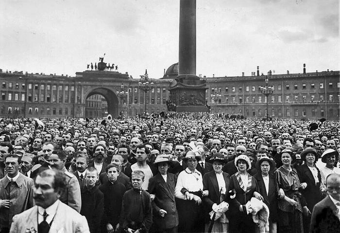 В день объявления Первой мировой войны на Дворцовой площади в Санкт-Петербурге