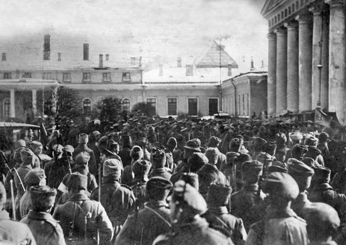 Власть была сметена во всей стране без остатка, сверху донизу, как в столицах, так и в других городах, и в деревнях. Между тем на фронте стояли миллионы солдат под ружьем, продолжающие войну, конца которой еще не было и видно.