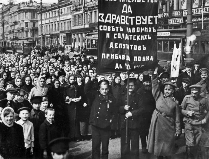 В марте 1917 г. Петроградский Совет рабочих и солдатских депутатов принял «Манифест к народам всего мира», в котором было заявлено об отказе от захватнических целей в войне, аннексий и контрибуций, но признавалась «революционная война» с Германией.