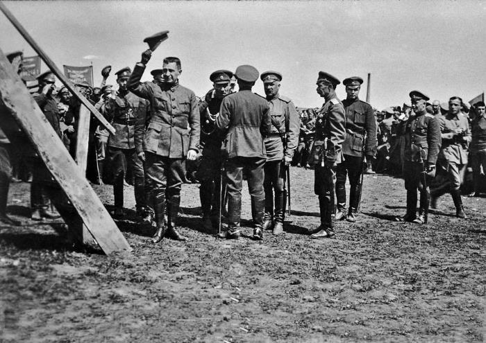 – Это трагедия не только командного состава, но всей интеллигенции. Положение командира корпуса, вынужденного командовать солдатами при наличии комитетов, не тяжелее положения Церетели, вернувшего с каторги и ставшего министром.