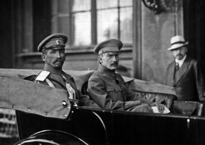 Л.Г. Корнилов и Б.В. Савинков в автомобиле у подъезда Зимнего дворца