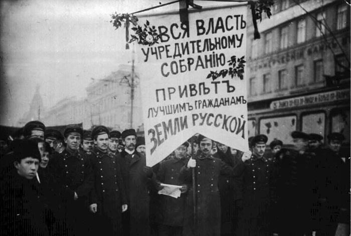Демонстрация в честь созыва Учредительного собрания 5 января 1918 г., которая была жестоко разогнана большевиками