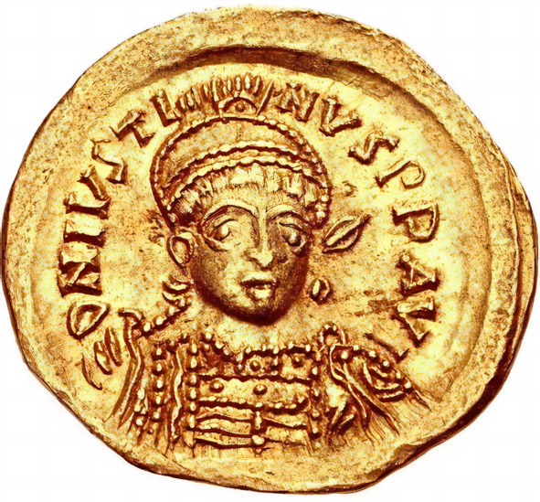 Изображение Юстина на монете