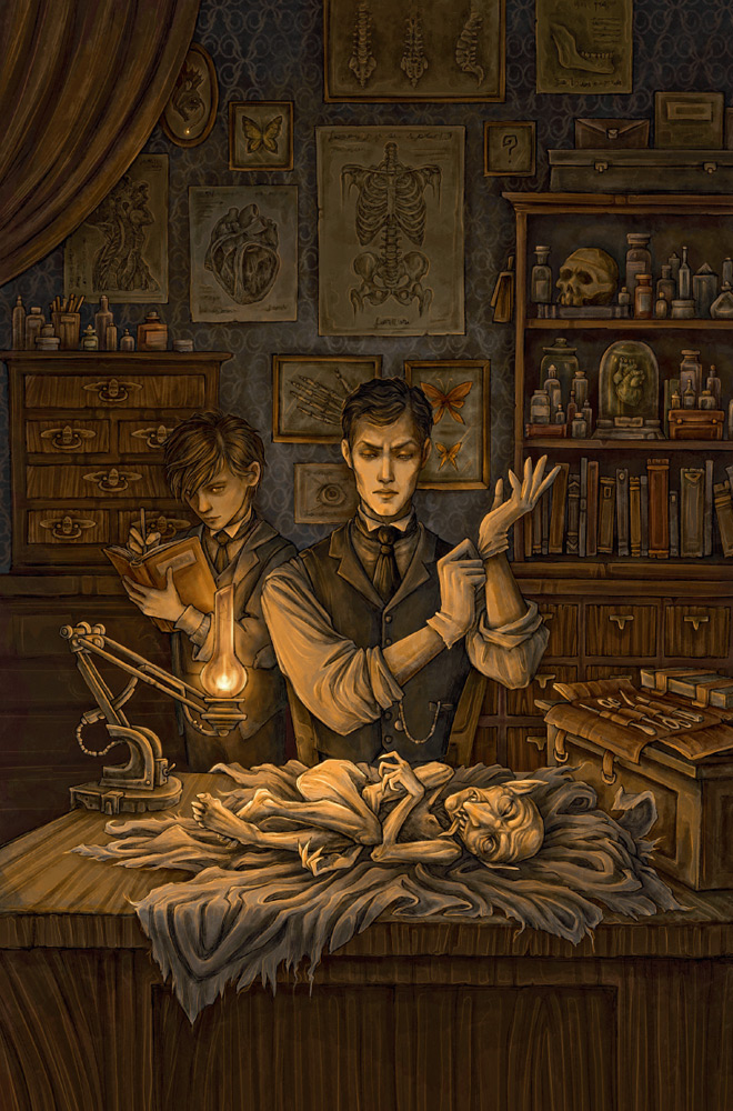 Доктор Горрин служил при Больнице Странных Болезней патологоанатомом, занимал должность полицейского коронера и отвечал за все, что было связано с официальным вскрытием человеческих тел в Тремпл-Толл. А еще он будто бы постоянно таскал за собой смерть и разложение. И временами действительно таскал: его не раз и не два просили удалиться из какого-нибудь кафе, когда он доставал из своего саквояжа банку с плавающим в ней органом, – доктор Горрин не понимал, отчего на него гневаются, ведь он просто хотел изучить «кое-что занятное» между утренним кофе и свежим номером «Сплетни».