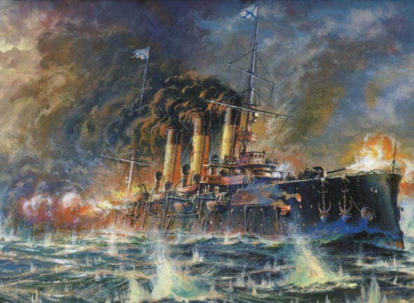 Крейсер «Аврора» в Цусимском сражении.