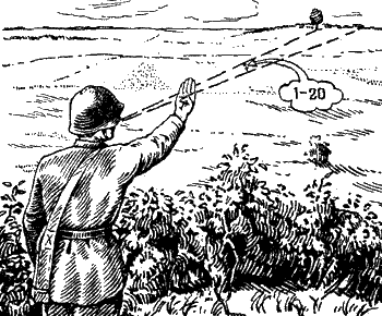 Обычно в бою расстояния вам придется измерять самым простым приемом – на-глаз. Для этого воспользуйтесь прежде всего известным уже вам свойством глаза различать предметы, только начиная с некоторой определенной дальности. Зная, с какого расстояния какой предмет перестает быть ясно различимым, вы сможете, примерно, судить о дальности.