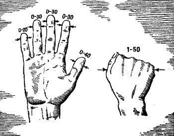 Рис. 180. «Цена» пальцев и кулака в «тысячных»