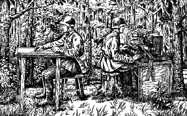 У звуковой разведки есть и помехи. Звукоприемники автоматически откликаются на все звуки выстрелов, разрывов снарядов и взрывов. И если не принять специальных мер, то на ленте звукометрической станции окажется столько записей, что разобраться в них будет очень трудно, а может быть, и невозможно. Чтобы этого не случилось, перед звукоприемниками выставляют предупредителя – слухача, на таком удалении, что звуки выстрелов батарей противника доходят до него раньше, чем до звукоприемников. Этот слухач, получив указания от командира, пускает в ход звукометрическую станцию только в те моменты, когда до него доходят засекаемые станцией звуки (выстрелы батарей противника). Для того чтобы пустить станцию в ход, слухачу достаточно нажать кнопку на так называемом блок-приборе – предупредителе. Тем самым в цепь станции включается ток, а значит, приводятся; в действие и звукоприемники, и регистрирующий прибор.