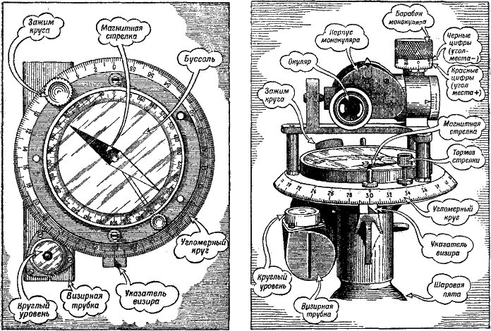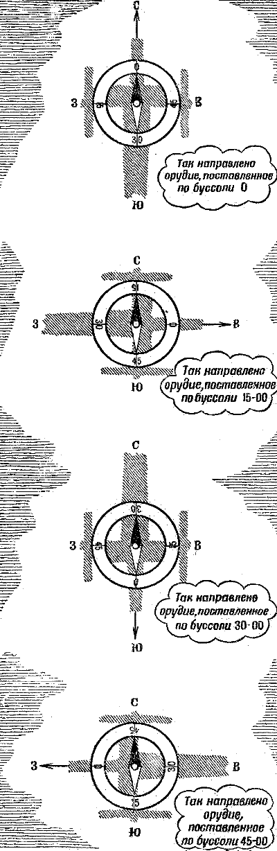 Рис. 247. Как направить орудие в цепь по буссоли: отметка буссолью