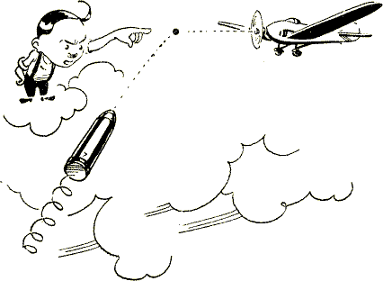Вы тревожно считаете секунды. Когда вы командовали прицел, вы учитывали, что на подготовку орудия к выстрелу понадобится 10 секунд (это – так называемое «работное время»), а на полет снаряда до цели – еще примерно 10 секунд. Но за эти 20 секунд самолет успеет приблизиться на две тысячи метров. Поэтому-то вы и скомандовали прицел не на пять, а на три тысячи метров, то-есть прицел 60. Значит, если орудие не будет готово к выстрелу через 10 секунд, если наводчик опоздает хотя бы на секунду, все ваши расчеты пойдут насмарку, – орудие пошлет снаряд в точку, которую самолет уже пролетел.
