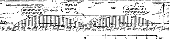 Самолет находится за пределами досягаемости орудия (рис. 286): ваше орудие не может попасть в него, потому что траектория противотанкового орудия поднимается не выше одного километра, а самолет летит на высоте двух километров.