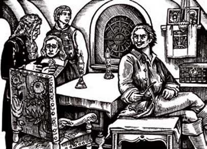 Гостей разместили в палатах, после чего пригласили трапезничать, отведать угощения, какие бог послал. А послал бог и студень, и уху, и кашу тыквенную, и икру осетровую, и гусей жареных, и кур, и порося запечённого, и яблоки мочёные. Антип Прохорович сам резал хлеб и раздавал гостям. Пили медовуху и вино заморское, произнося здравицы царю и иноземцам да хозяину с хозяюшкой. И за праздник пили, за Покрова Богородицы.