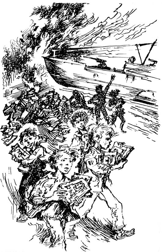 Впрочем, никто и не кидался. Его еще не успели разжечь, когда на сваленную у края пустыря за стадионом книжную гору налетела ватага молчаливых, сосредоточенно сопящих «торпедоносцев». Они деловито выхватывали из груды растрепанные книжки, уносили на траву и умело связывали в пачки. Те, кто собирался поджечь, и те, кто этим командовал, подняли крик: «Кто позволил? Где педагоги? Милиция!.. То есть полиция!»