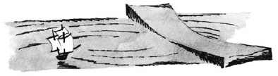 К нижней ступеньке крыльца подступала широкая лужа. Вода казалась черной и маслянистой. Через лужу была перекинута доска. А я и не заметил, как проскочил по ней сюда. Недалеко от доски застыл на гладкой воде крошечный двухмачтовый кораблик с размокшими парусами. Я узнал свою каравеллу, хотя мачты были другие – выше и аккуратнее.