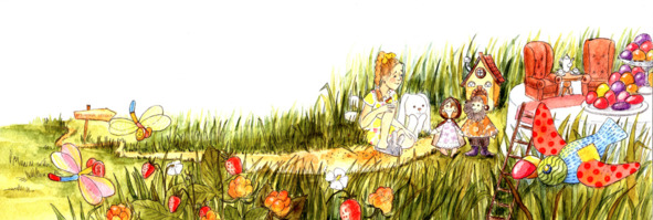 – Пойдёмте, пойдёмте к столу! – радостно размахивая тряпичными ручками, пригласила путников Морошка. Так как гномики были значительно меньше стола, то к нему была приставлена лестница. По ней-то они и забрались на стол и уютно расположились в мягких креслицах, которые стояли на столе. А зайцу и Васёне стол оказался впору, и поэтому на стол им залезать не пришлось, ведь вокруг стола стояли вполне подходящие кресла.