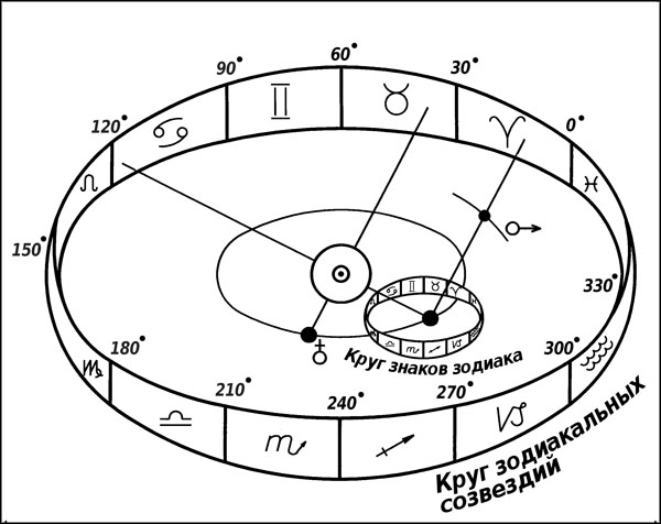 Мы будем придерживаться данных, указанных в американских эфемеридах, так как они являются официальным источником, на основе которого производится большинство астрологических расчетов. Когда говорят, что Марс находится в 10° Тельца, то имеют в виду, что при взгляде с Земли Марс виден в 10° того сектора эклиптики, который соответствует Тельцу, в то время как среди зодиакальных созвездий в это же самое время он будет виден на фоне 15° Овна.