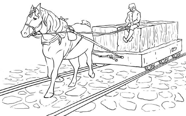 Еще больше свезет та же лошадь на рельсовом пути – в 6 раз больший груз, чем на булыжной мостовой.