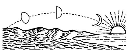 Чтобы и в этом случае не ошибиться в возрасте Луны, надо обратиться к астрономическим признакам: молодой месяц виден вечером в западной части неба; старый – поутру в восточной части неба.