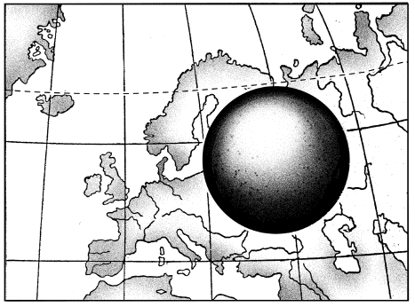 Рис. 39. Размеры Луны по сравнению с материком Европы (не следует, однако, заключать, что поверхность лунного шара меньше поверхности Европы)