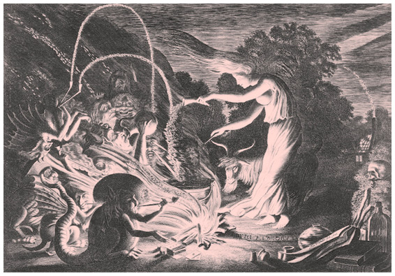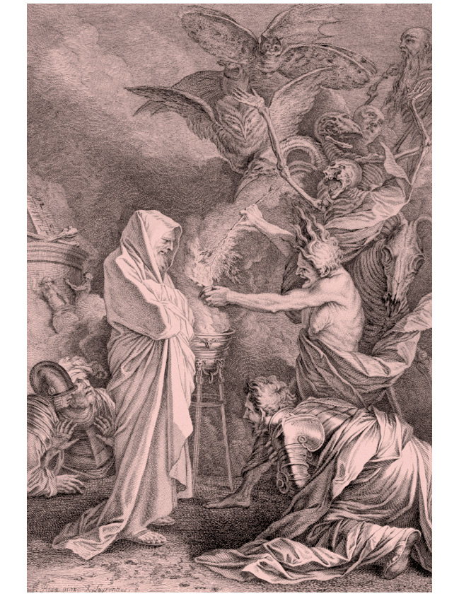 Аэндорская волшебница призывает дух Самуила. Гравюра Эндрю Лоуренса по картине Сальватора Розы, 1718–1747 гг.