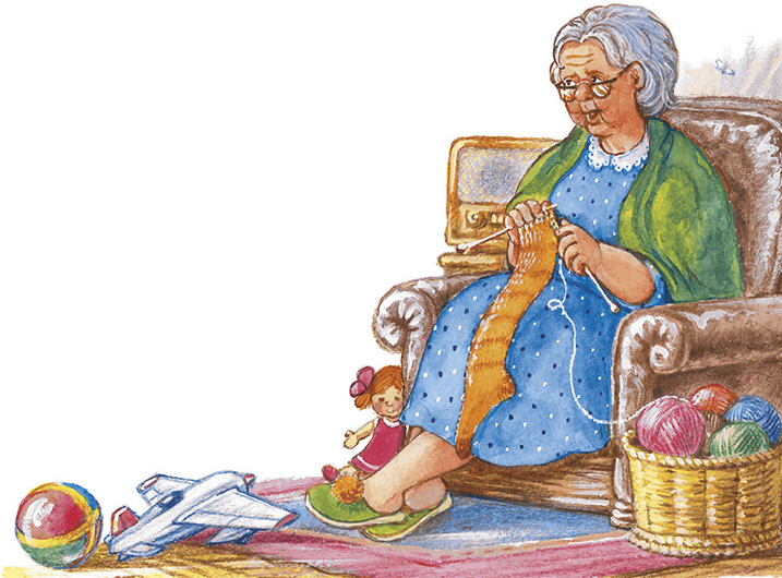 Она взяла клубок шерсти, вытащила из кармана фартука вязальные спицы и длинный, недовязанный шерстяной чулок. Спицы засновали в ее руках, вытягивая из клубка толстую шерстяную нитку.