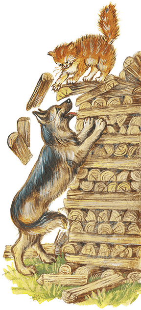 В боковом подъезде сильно хлопнула дверь. Во двор, волоча за собой гремящую цепь, выскочила большая остромордая собака овчарка. Жирный кот Анюта одним прыжком взлетел на поленницу дров. «Тссс! – зашипел он, поднимая лапу. – Прош-ш-шу не ш-ш-шу-уметь!»