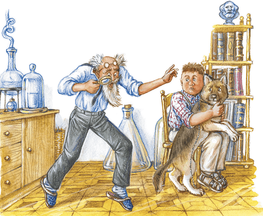 Ребята молча обошли кабинет, покрутили немножко винтики микроскопа, посидели по очереди в кожаном кресле, на спинке которого лежал, раскинув пустые рукава, белый халат профессора, а потом стали рассматривать банки, колбы и реторты.