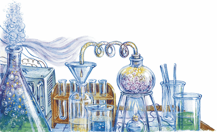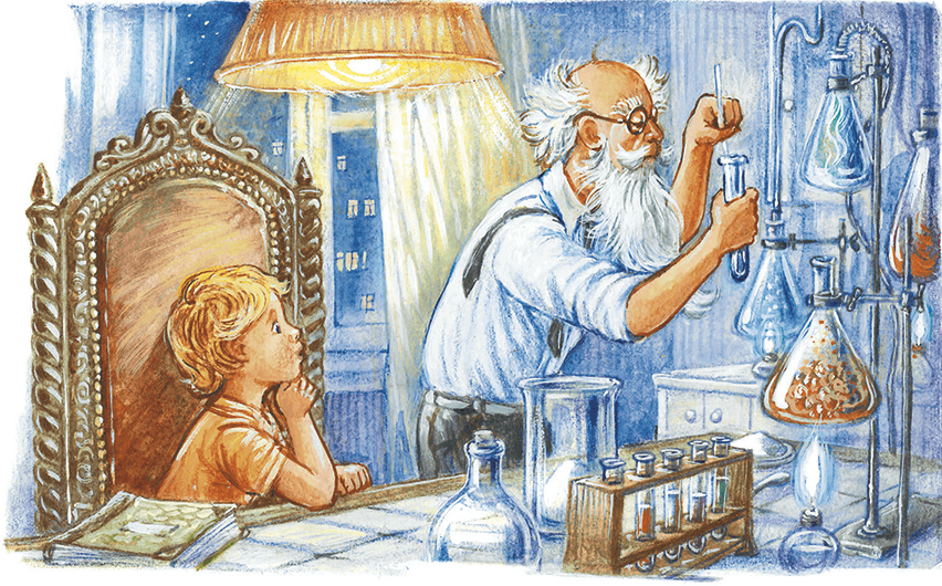 Окна профессорского кабинета были раскрыты настежь. Яркое летнее солнце щедро освещало большой белый стол. Он весь был заставлен пузатыми банками, колбами и ретортами. Между банками стояли в стаканах пучки очень длинных стеклянных трубочек. Ослепительно сверкали на солнце никелированные чашечки, матово светились фарфоровые ступки, весело сияли медные части микроскопа. Резвые солнечные зайчики стремительно проносились по потолку, скользили по стенам, прыгали по колбам и ретортам.