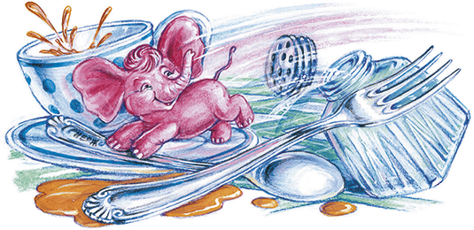 Всю ночь Карик ворочался с боку на бок. Во сне он видел розового слона, да такого крошечного, что его можно было посадить в наперсток. Слон ел компот, бегал по столу вокруг тарелок и так шалил, что рассыпал всю соль, а сам чуть не утонул в горчице. Карик достал его из горчичницы и принялся обмывать в блюдечке, но слон вырывался и толкал Карика хоботом в плечо. Потом он прыгнул ему на голову и сказал голосом какой-то знакомой девочки: