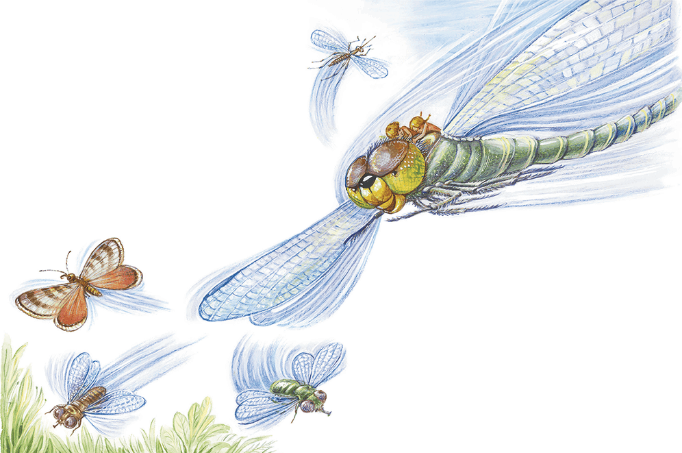 Стрекоза пожирала мух, бабочек и комаров без устали.